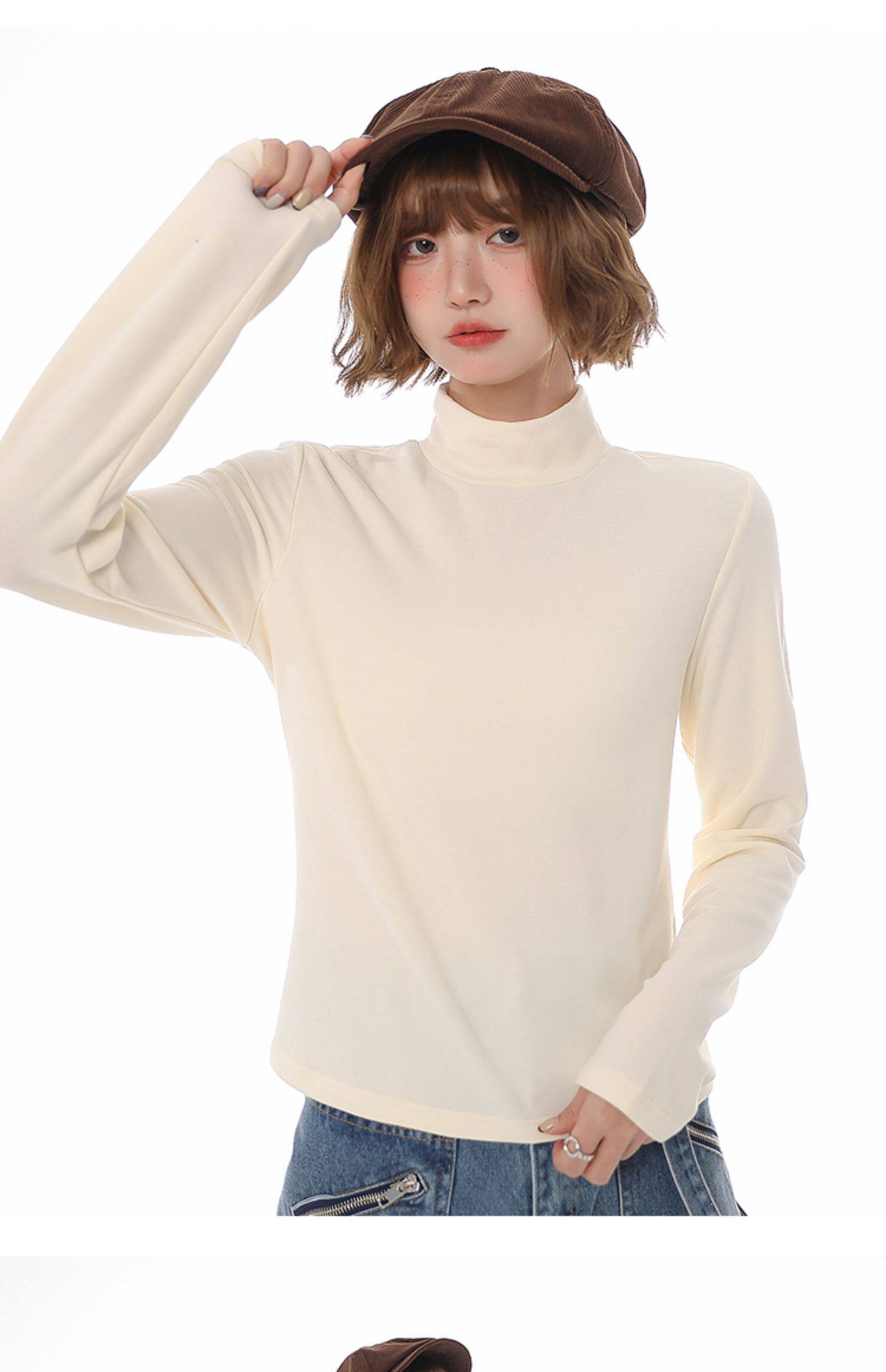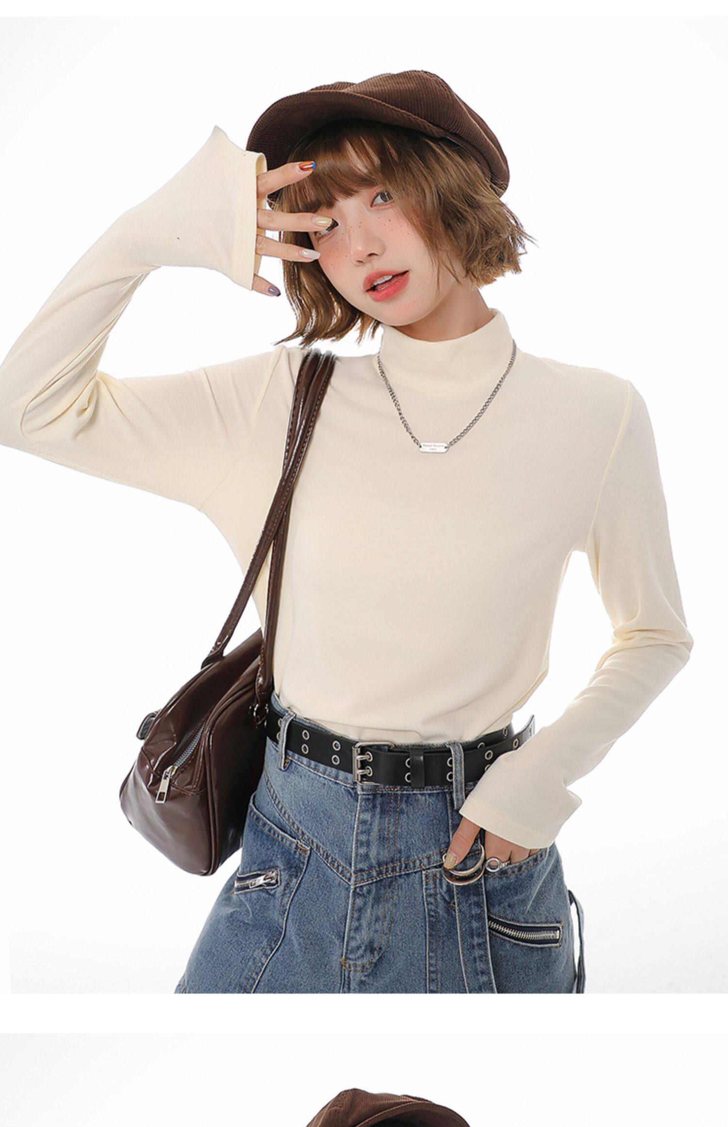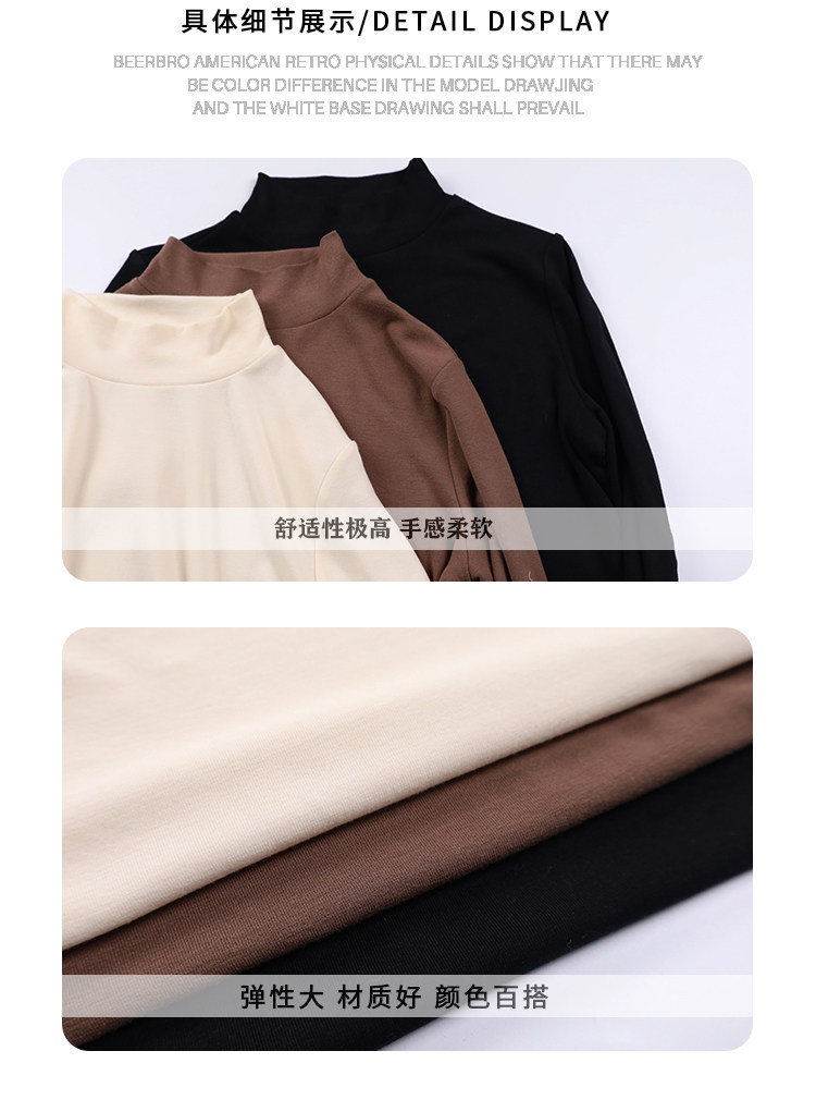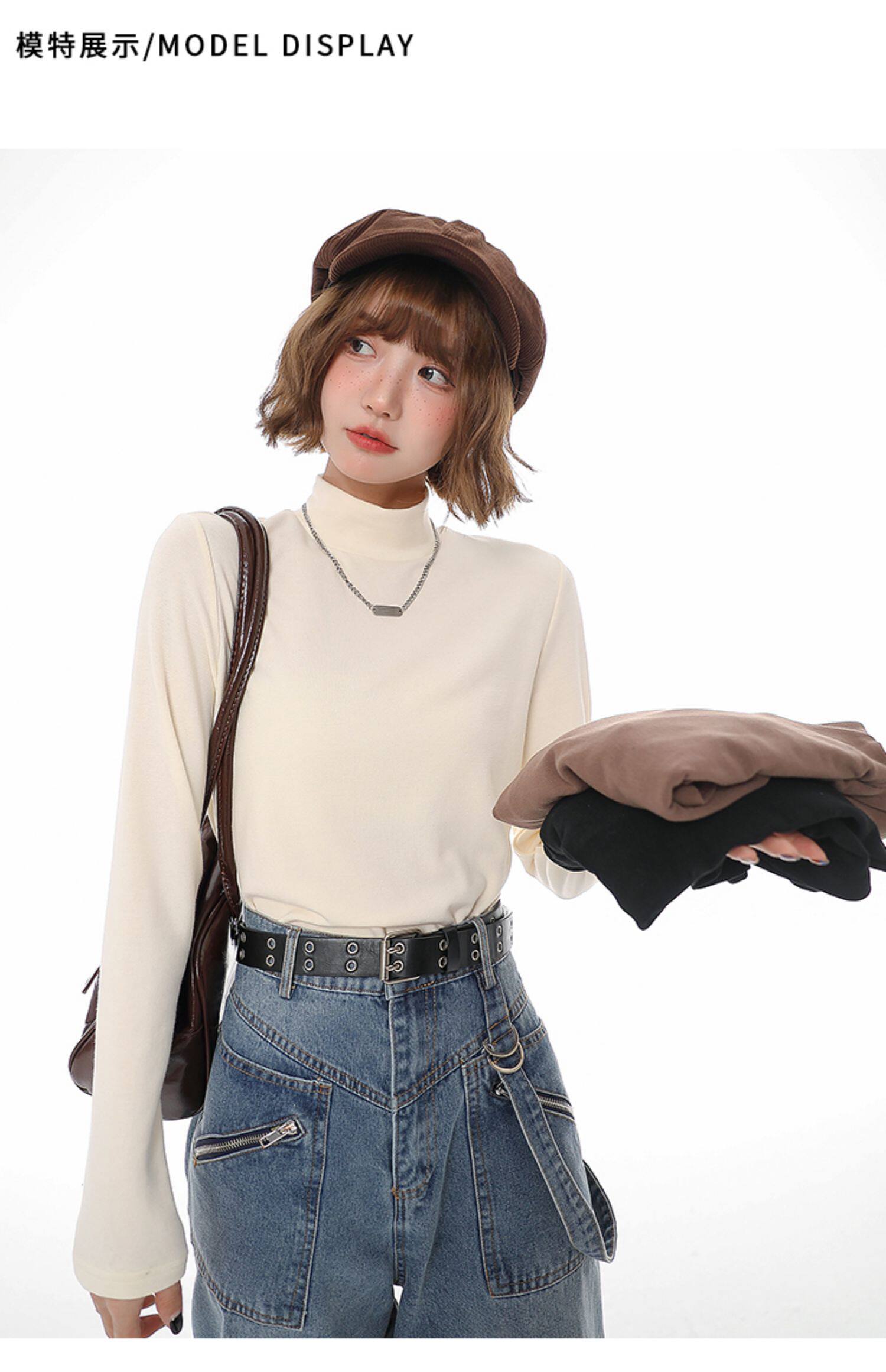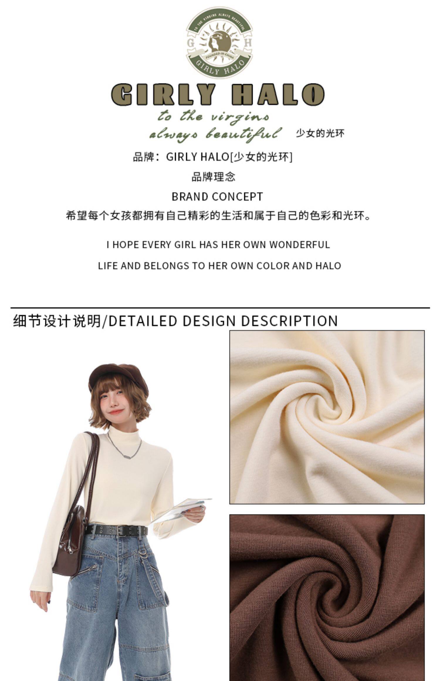 Girlyhalo秋冬加绒针织内搭半高领打底衫女长袖加厚修身显瘦上衣