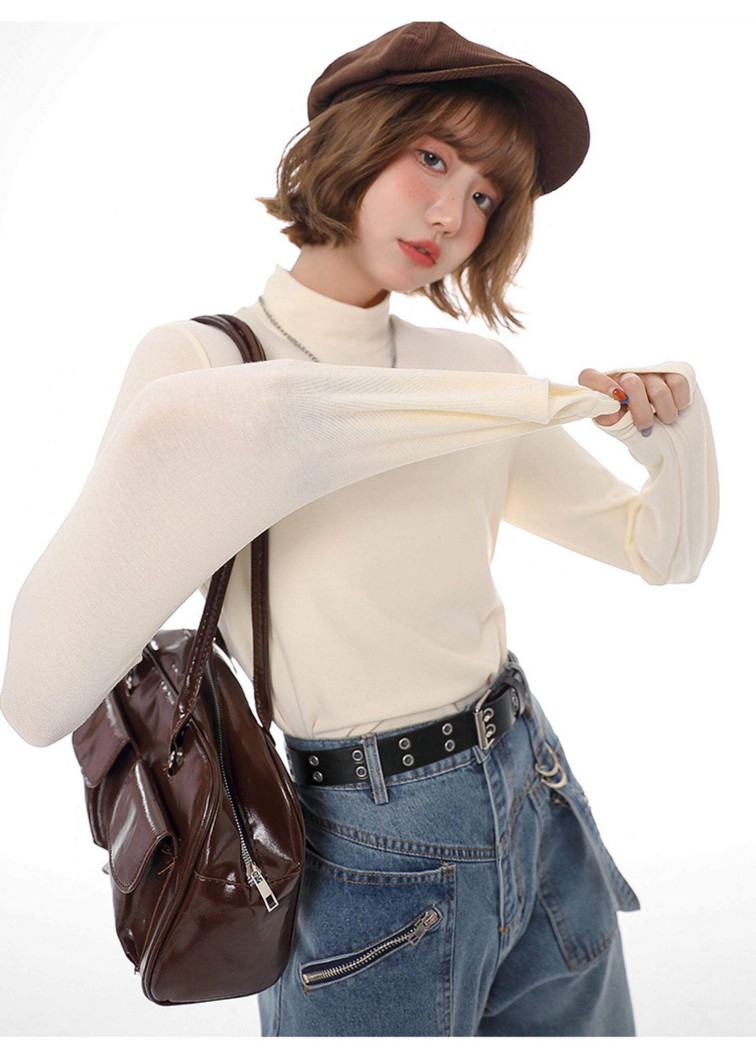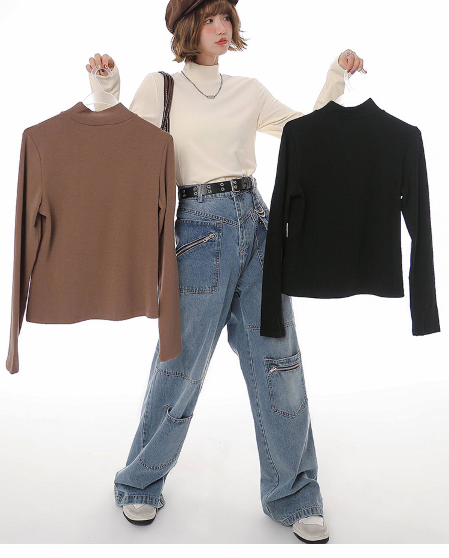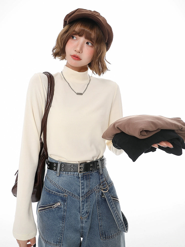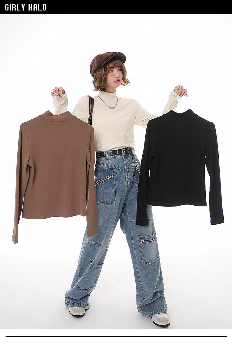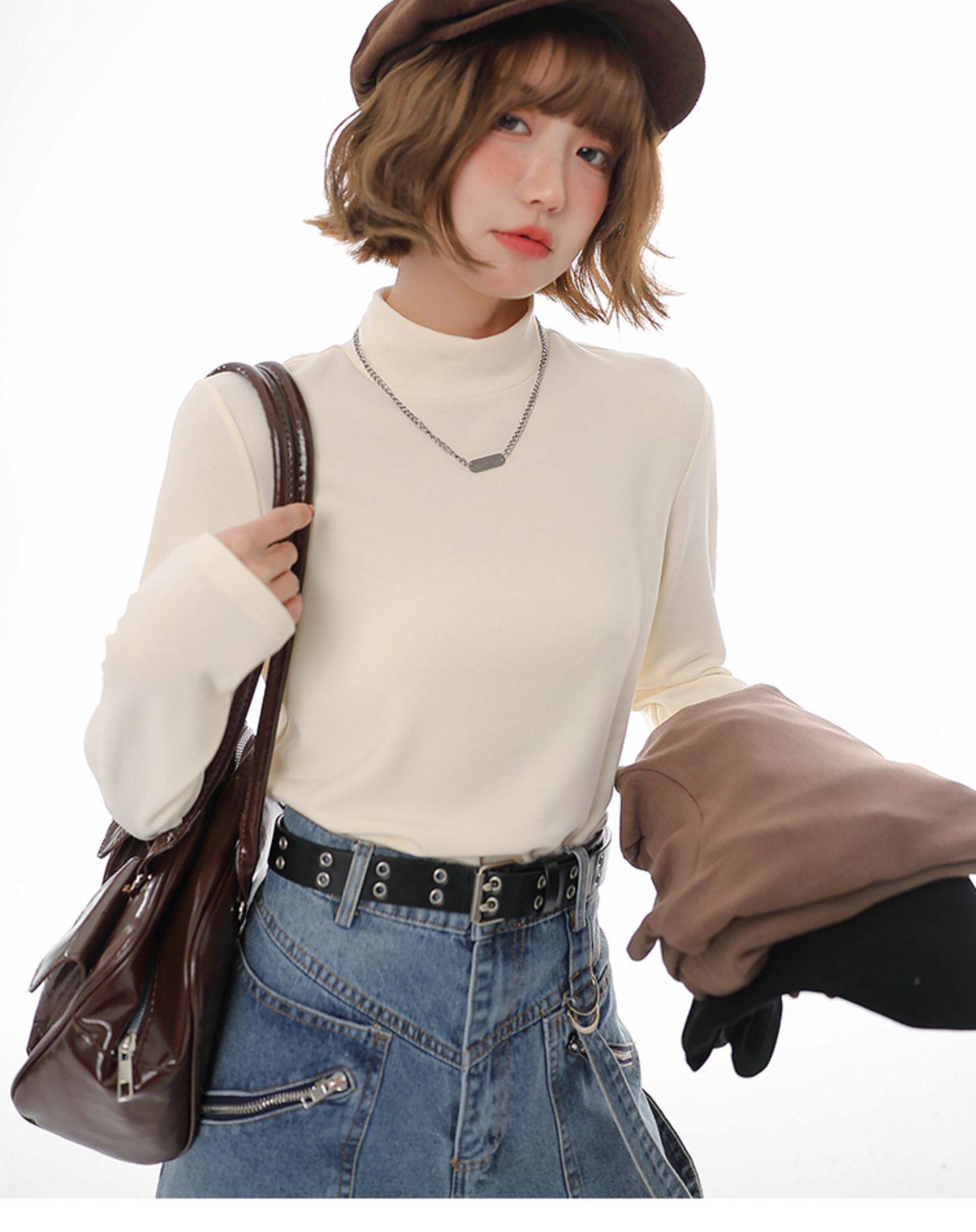 Girlyhalo秋冬加绒针织内搭半高领打底衫女长袖加厚修身显瘦上衣