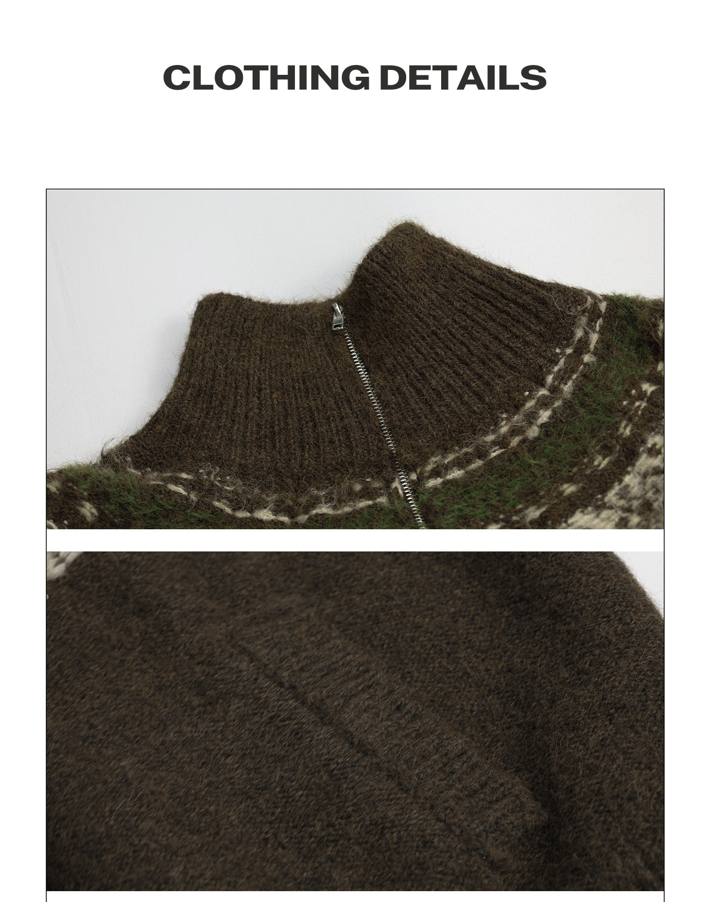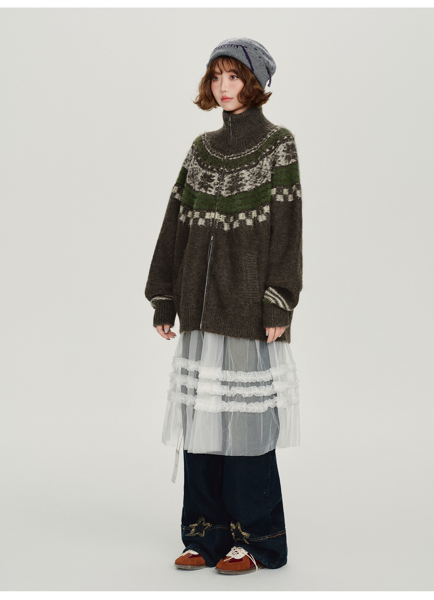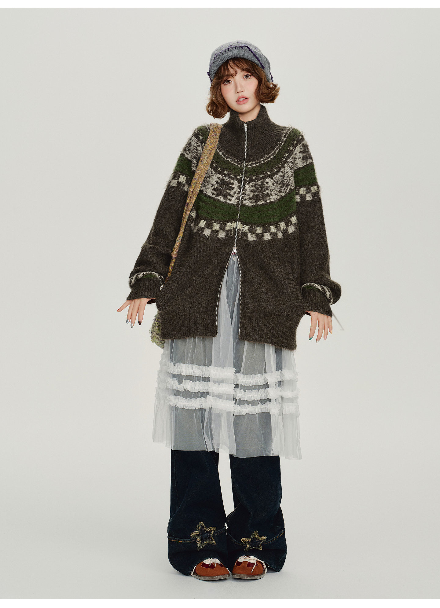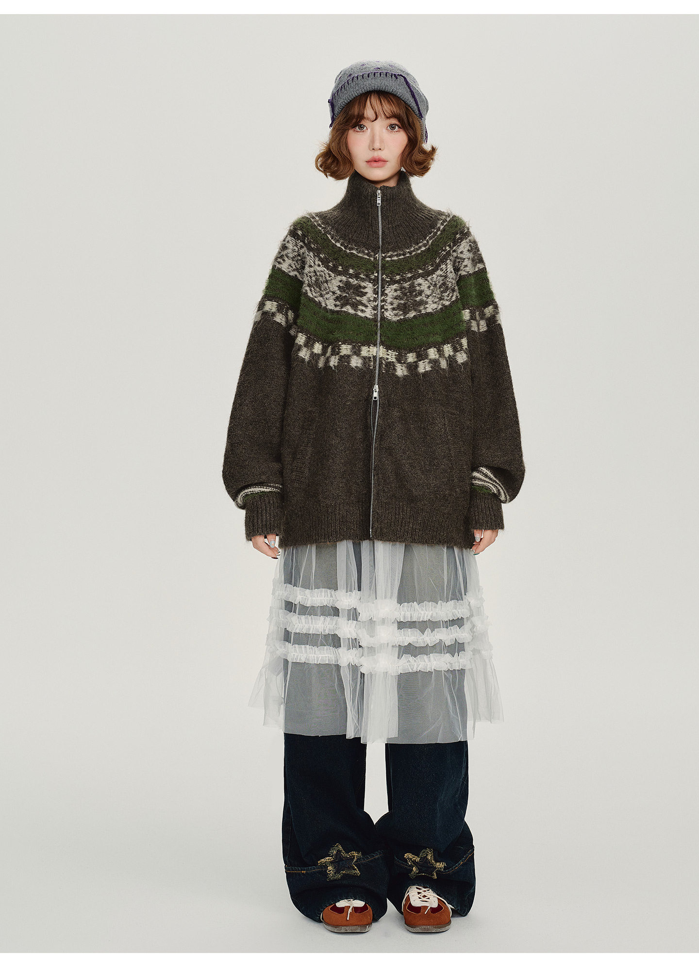 Girlyhalo美式复古费尔岛提花针织外套女冬新款加厚保暖宽松上衣